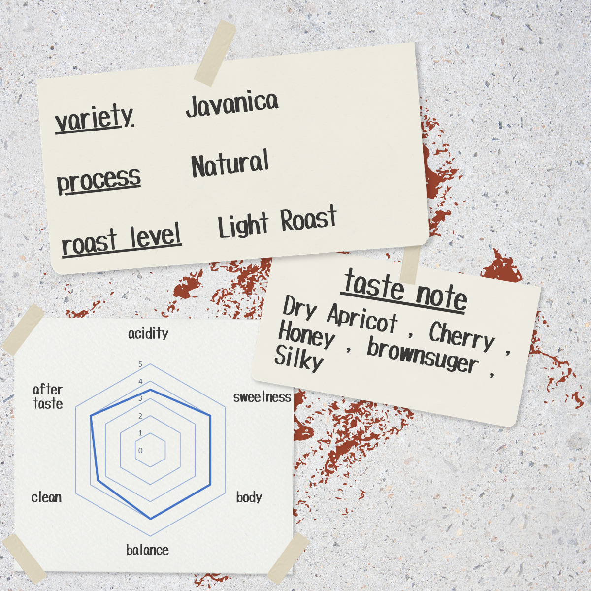 このロットは、カサブランカ農園の一区画であるエル・リモン産のジャバニカ、ナチュラルプロセスです。